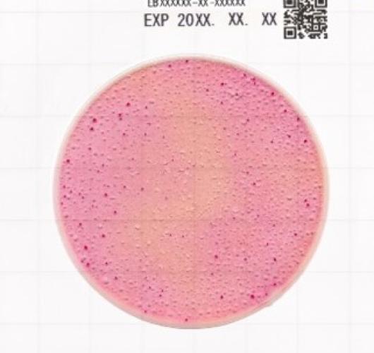 Пластина для микробного тестирования, содержащая Агар с желчью, глюкозой и фиолетовым красным (Violet Red Bile Glucose (VRBG)). Колонии легко идентифицируются в течение 24±1 часа.