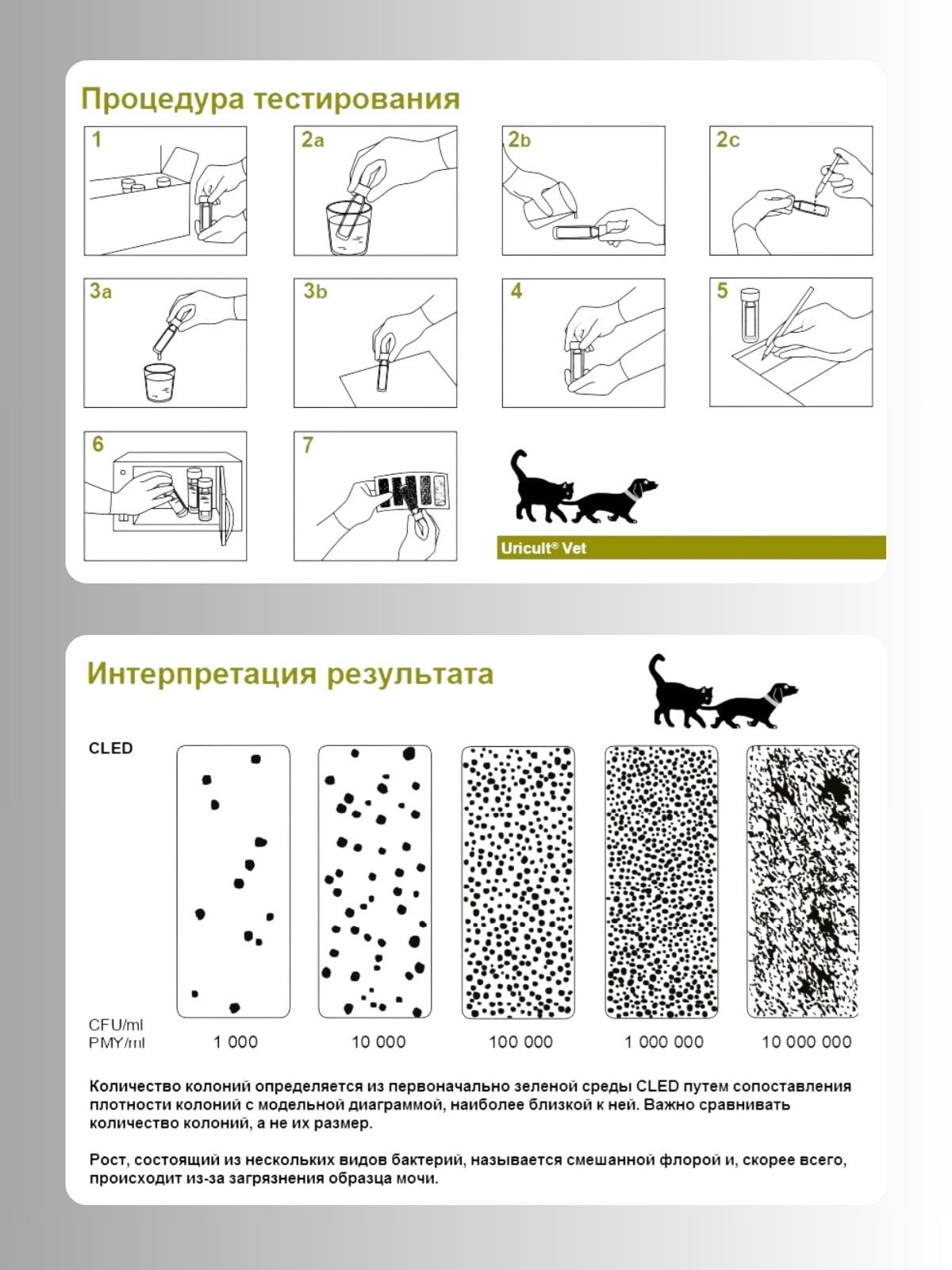 Система Урикульт Вет-Uricult Vet на основе микропрепаратов использует две культуральные среды для выявления микроорганизмов, вызывающих инфекции мочевыводящих путей у животных.